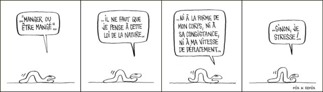 "Eat or be eaten"... I must not think of this law of nature, nor of the shape of my body, nor of its consistency, nor of my speed of movement, otherwise I get stressed out!